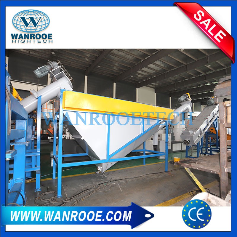 6 | La primera vez flotando lavando los copos de PET. | Lavadora flotante | Una forma de separar los materiales que flotan de los que se hunden, el tanque de separación del fregadero / flotador es ideal para el reciclaje de PET, ya que los escamas de PET se hunden mientras que la película de plástico, las tapas de botellas de PP / PE y otros contaminantes flotan. |