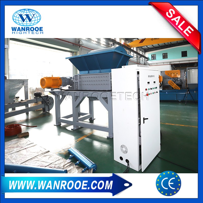 2. Trituradora de residuos de doble par, de velocidad lenta y alto par con cuchillas de acero endurecido;