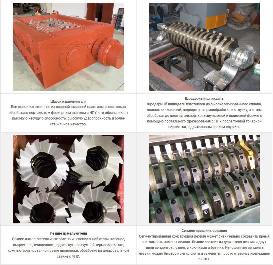 6. В зависимости от требований эти ножи (лезвия) доступны в широком диапазоне количеств, качеств и форм с помощью нового двухвального измельчителя;