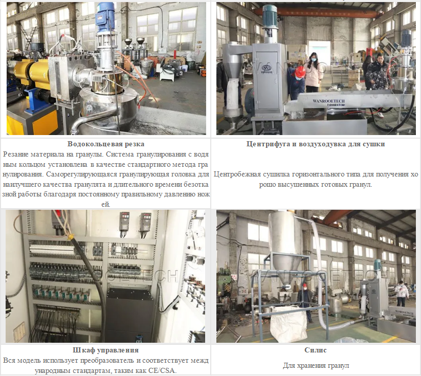 Шнековый питатель (ОПЦИЯ) → Загрузочный бункер → Одношнековый экструдер для дегазации → Гидравлический сменный фильтр → Головка формы → Резка водяного кольца → Обезвоживающая машина → Воздуходувка → Резервуар для хранения → Установка для упаковки готовых продуктов.