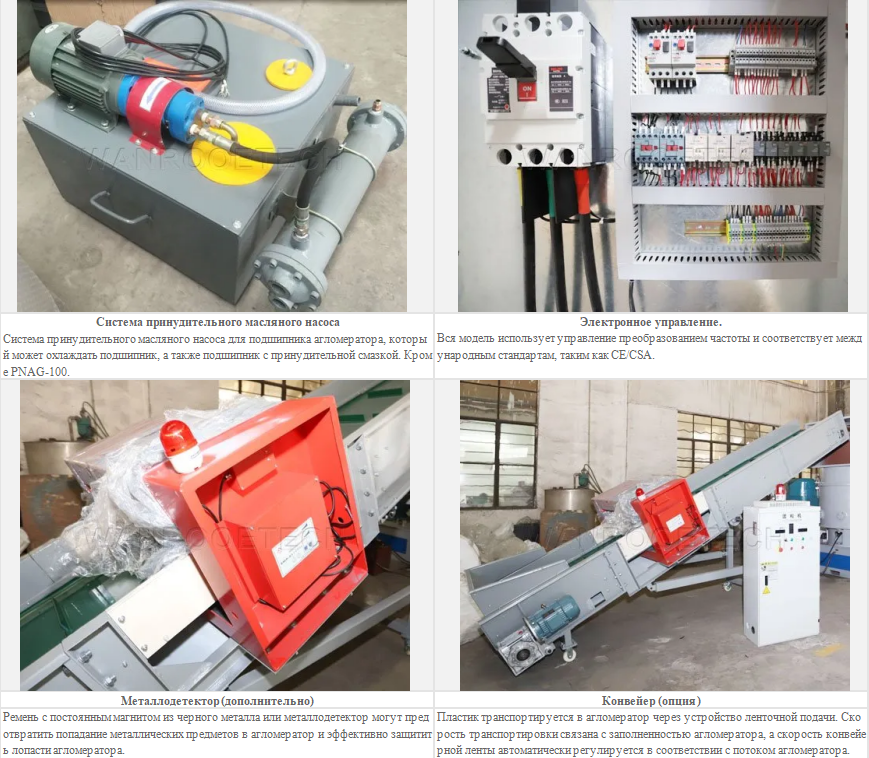 Агломератор (гранулятор пластиковой пленки) представляет собой оборудование для переработки термопластических отходов как тонких пленок, толщина которых составляет менее 2 мм. Сырье могут быть отходы или тонкая пленка мягкого поливинилхлорида (ПВХ), полиэтилена высокого и низкого давления, полипропилена и полистирола, других термопластичных пластиков на заполнителе, а также остатки изделий из вспененного полистирола для грануляции.