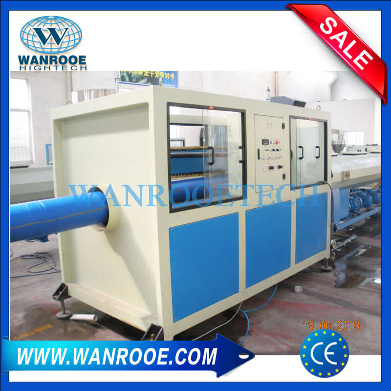 Данная экструзионная линия для производства ПЭВП / ПЭ труб используется в производстве газовых и водяных труб большого диаметра, которые характеризуются выскокой жесткостью, гибкостью, термостойкостью, устойчивость к старению, механическую прочностью, устойчивостью к растрескиванию под воздействием напряжений окружающей среды и деформацию ползучести, утечкой тепла и т. д. Таким образом, эта линия по производству труб является предпочтительным для системы воздуховодов в городах и пригородах. Трубы из ПЭВП большого диаметра начинают играть значительно важную роль в городских системах водоснабжения и газоснабжения.