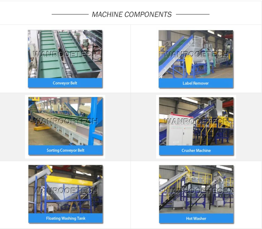 Линия мойки ПЭТ-бутылок в основном используется для переработки таких бутылок, как бутылки для минеральной воды, бутылки для напитков, бутылки для масла и т. д. В конце получают чистые ПЭТ-хлопья. Данная производственная соединяет функции измельчения, мытья и сушки. Линия мойки ПЭТ-бутылок от WANROOETECH является идеальным решением для переработки грязных тюков ПЭТ-бутылок в чистые ПЭТ-хлопья. Используя нашу стандартную серию высокотехнологичного оборудования для переработки, производимые хлопья ПЭТ не только чистые, но и не содержат примесей, что делает их идеальными для использования в производстве полиэфирного штапельного волокна или дальнейшей переработки в пластиковые гранулы путем гранулирования.