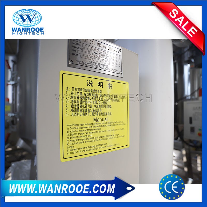 Вертикальный сушилка-миксер широко используется для смешивания, сушки, окраски и другой технологии. Это идеальное оборудование для производства профилей и турб. Смеситель использует автотрение и электрический нагрев. У бункера есть три слоя герметизация в крышке горшка, которая выполнена в арочной форме, что поможет избежать деформации. Смеситель отличается компактной конструкцией, высокой производительностью. Ножи оборудования прошли испытывание динамического и статического баланса.