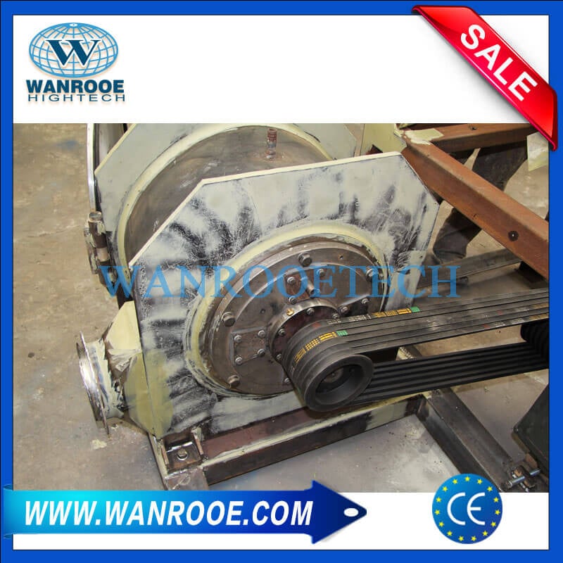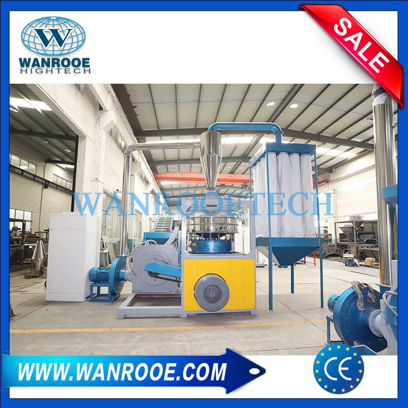 La máquina pulverizadora de plástico se compone principalmente de motor eléctrico, cuchilla tipo disco, ventilador de alimentación, tamiz vibratorio, sistema de eliminación de polvo, etc.