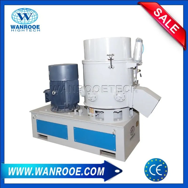 Помещая отходы в корпус горшка машины, материал быстро разрезается за счет высокоскоростного вращения, поворота лезвия и сдвига фиксированного лезвия, затем материал передвигается вдоль стенки корпуса горшка с помощью функции центробежной силы ножевой тарелки, одновременно, материал поворачивается вверх и вниз с помощью лопасти и со всех сторон перемещается к центру корпуса горшка. Трение самого материала, а также трение стенок и лезвий производят большое количество тепла при трении на высокой скорости, в результате чего температура материала повышается до полупластического состояния и соединяется с небольшим комком. Прежде чем материалы заблокируются, на материал распылится количественная вода предварительной подготовки. Холодная вода, соприкасающаяся с горячими материалами, быстро газифицируется и отводит поверхностное тепло, благодаря чему поверхность материалов быстро охлаждается и избегает образования комков, а затем после эффекта дробления между вращающимся лезвием и неподвижным лезвием разрезается на частицы (материалы нестандартного размера). Во время дробления также могут присоединяться соответствующие цветные пигменты в соответствии с потребностями.